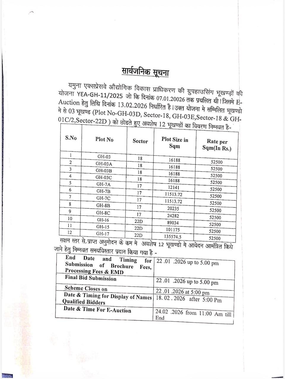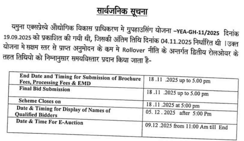 Yamuna Expressway Industrial Development Authority (YEIDA) has issued a public notice regarding amendments to its Group Housing Scheme No. YEA-GH-11/2025.