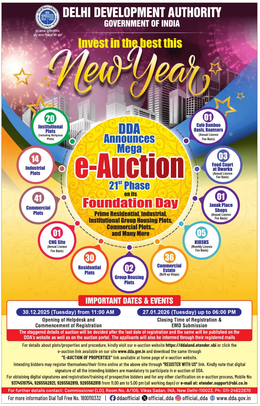 For assistance, DDA has set up a dedicated helpdesk and helpline numbers for prospective bidders during working hours.