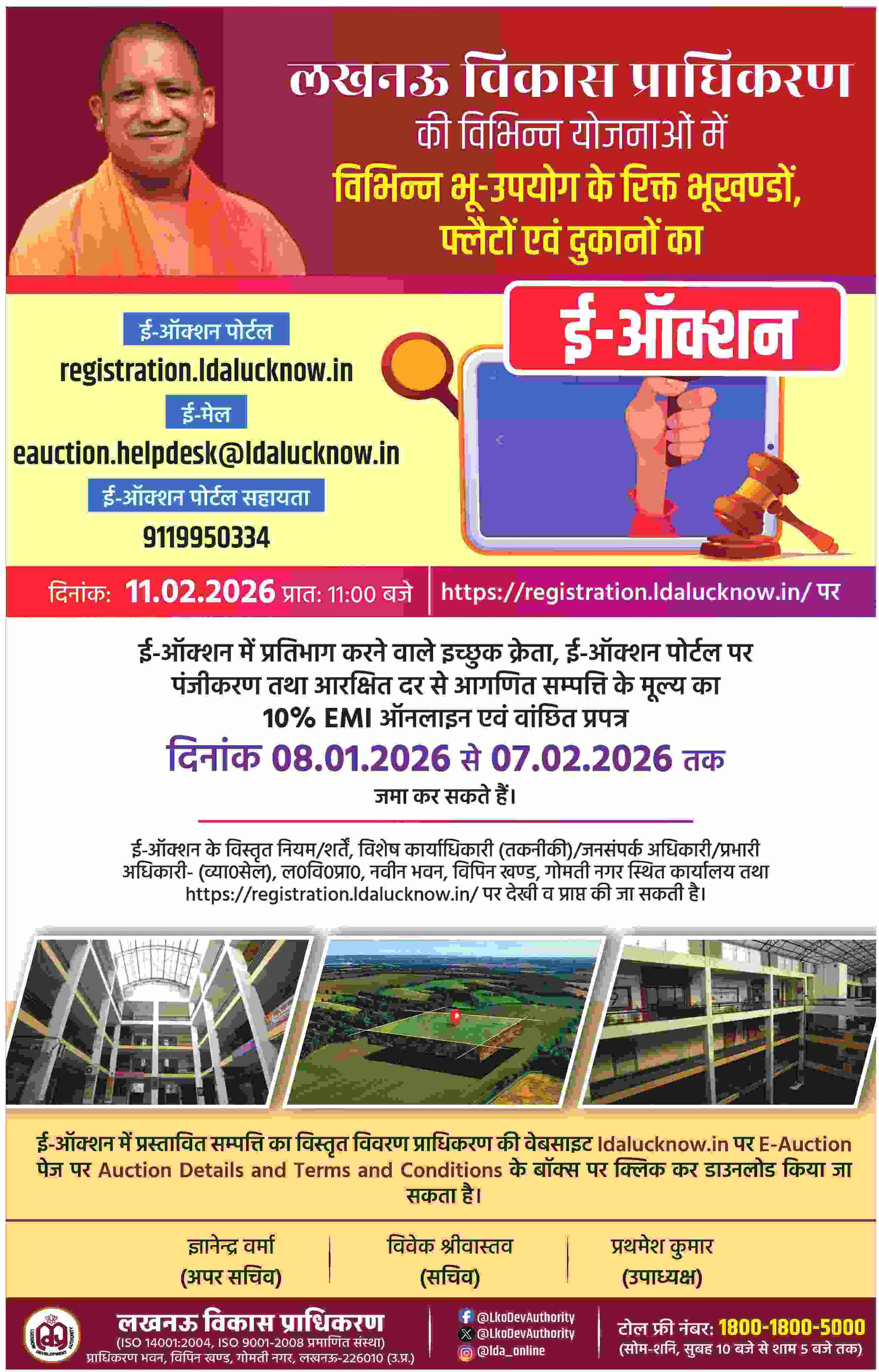 The Lucknow Development Authority (LDA) has announced a major e-auction of residential and commercial properties under various development schemes. The auction will be conducted online through the official LDA e-auction portal on 11 February 2026 at 11:00 AM.