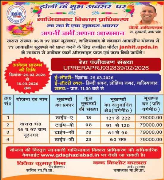 The Ghaziabad Development Authority (GDA) has announced a new residential plot scheme in Nandgram, Ghaziabad, offering 77 residential plots through an online application and e-lottery system. Launched around the festive occasion of Holi, the scheme presents a strong opportunity for homebuyers and investors in the NCR region.