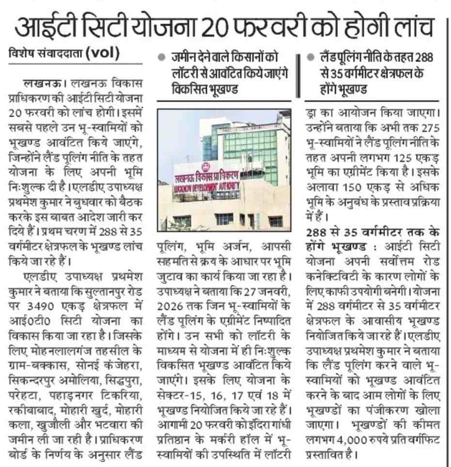 Lucknow Development Authority (LDA) has released a major update regarding its much-awaited and ambitious IT City Scheme. The project is being developed between Sultanpur Road and Kisan Path in Lucknow and will span a massive area of around 3,490 acres.