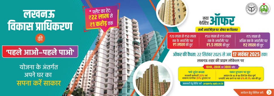Lucknow Development Authority (LDA) is offering a special festive season discount on its residential flats under the “First Come, First Serve” scheme. The offer will be valid from 22 September to 22 October 2025, providing homebuyers an opportunity to avail direct discounts of ₹1 lakh to ₹2 lakh depending on the flat’s price.