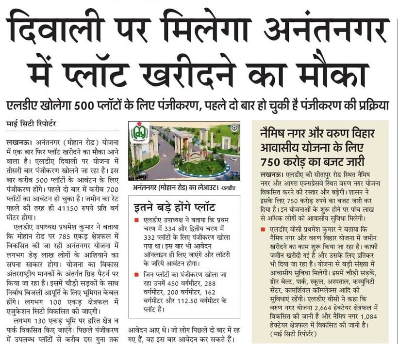With the ongoing development of Anant Nagar and the upcoming mega schemes at Naimish Nagar and Varun Vihar, the LDA aims to transform Lucknow’s urban landscape. Together, these projects are expected to provide affordable and well-planned residential options to more than six lakh residents, ensuring sustainable urban growth aligned with future infrastructure needs.