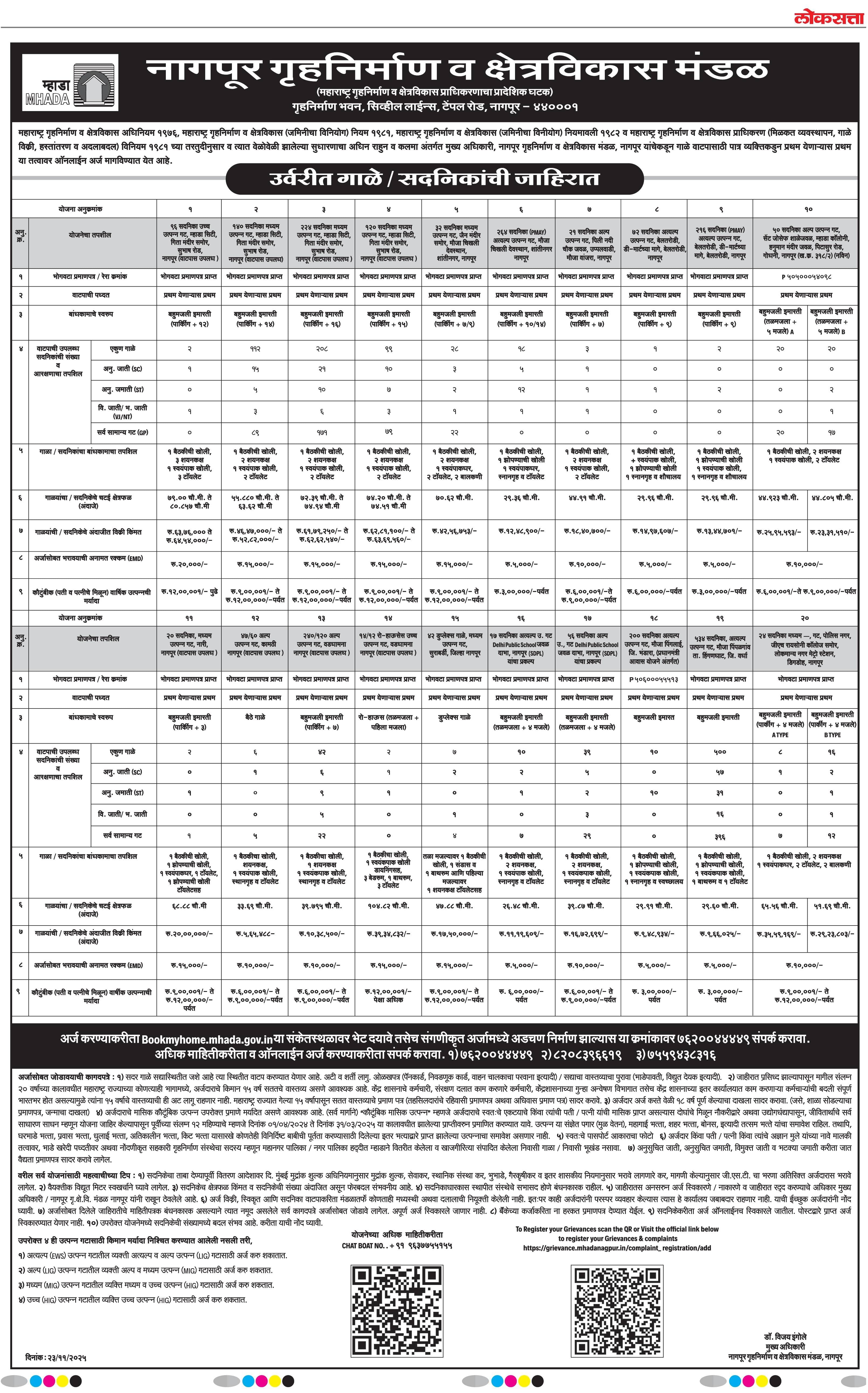 Nagpur, November 23, 2025: In a significant push to address the housing demand in the city, the Nagpur branch of the Maharashtra Housing and Area Development Authority (MHADA) has announced a major sale of 945 flats across various locations.