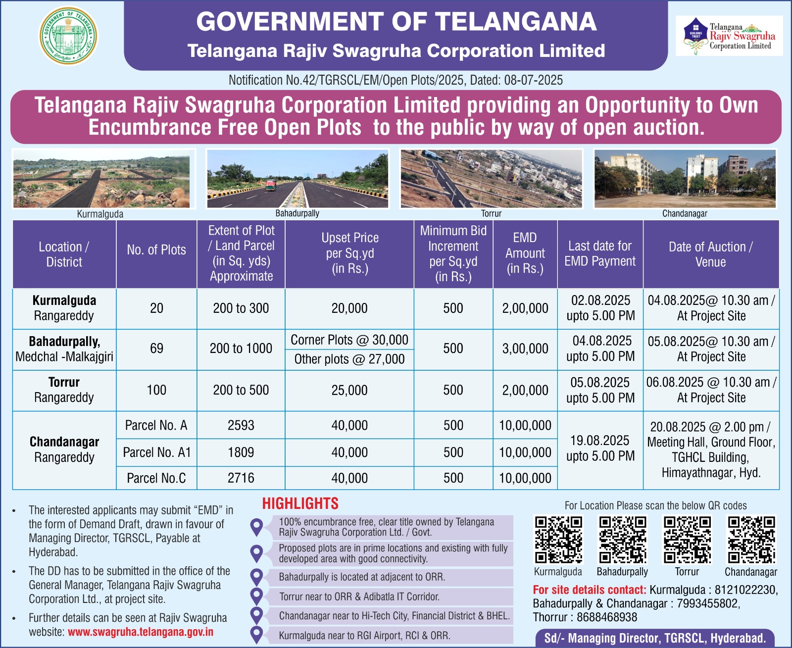 Further details are available on the official website www.swagruha.telangana.gov.in. QR codes have also been provided in the notification for exact plot locations.