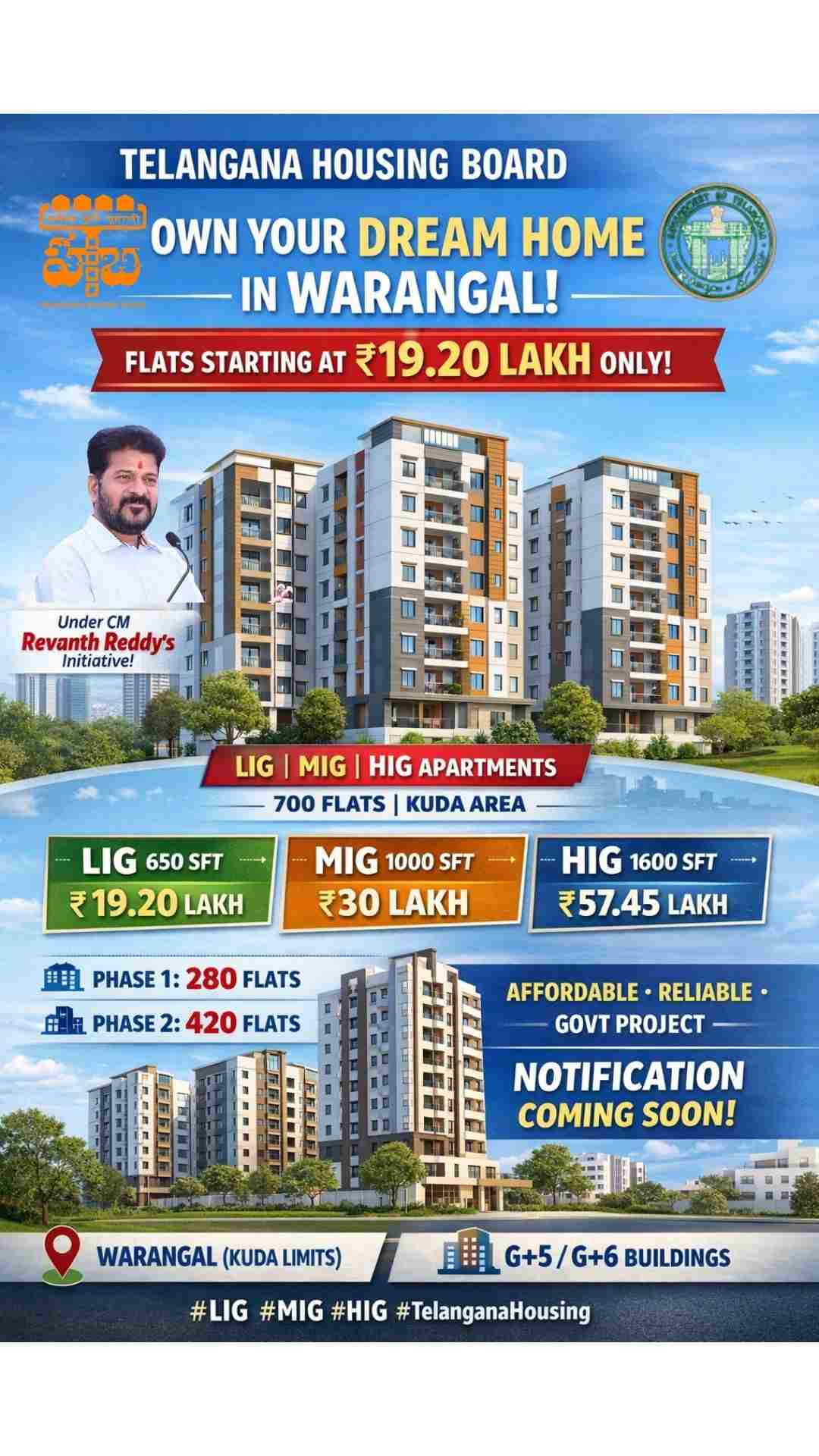 Telangana Housing Board to Launch Affordable Apartments in Warangal; LIG Flats from ₹19.20 Lakh