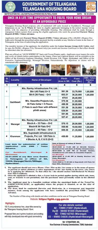 More details are available on the Telangana Housing Board website, tghb.cgg.gov.in.