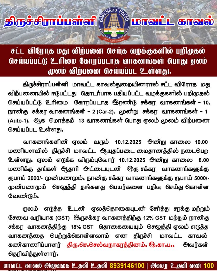 Tiruchirappalli District Police – Vehicle Auction Notification