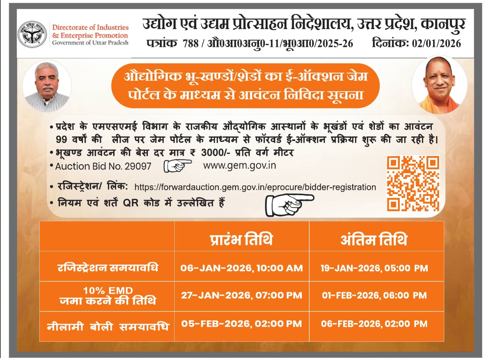 According to the auction notice, the process is being conducted by the Directorate of Industries, Uttar Pradesh, under the Small Scale Industries and Export Promotion Department. The e-auction, listed on the GeM portal under Auction ID 29097 with Reference No. 778, covers 354 units comprising industrial plots and sheds located across various government industrial estates in the state. The auctioneer for the process is Ruchi Shukla. The forward auction will have auto-extension enabled with unlimited extensions, ensuring transparency and fair competition among bidders.