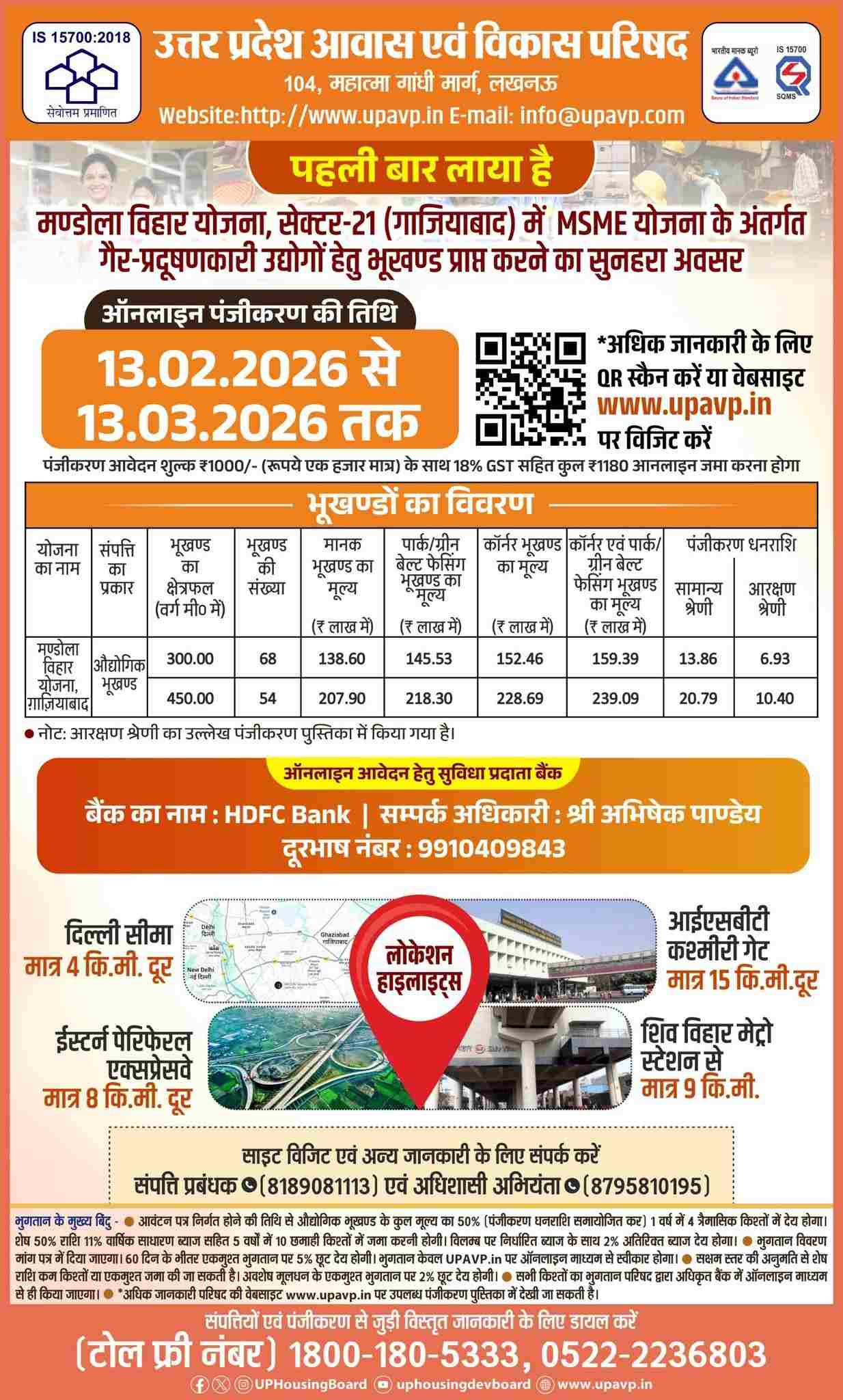 The Uttar Pradesh Awas Evam Vikas Parishad (UPAVP) has launched a major industrial plot scheme under the MSME category in Mandola Vihar Yojana, Sector-21, Ghaziabad. For the first time, non-polluting industries are being offered developed industrial plots in this prime location near Delhi.