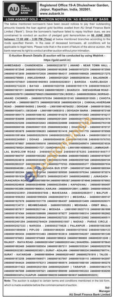 AU Small Finance Bank Gold Auctions Auction in Ahmedabad
