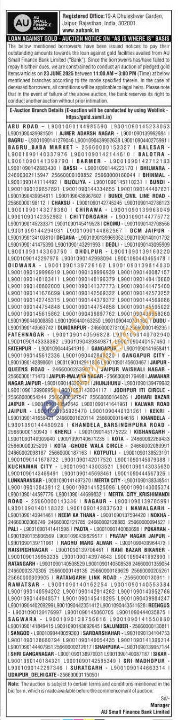 AU Small Finance Bank Gold Auctions Auction in Jaipur