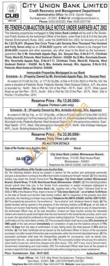 An extent of 188 Sq. Yds., or 157.18 Sq.Mts, of Site in R.S.No. 146/2 inT.S.No.936/1 & RCC Building consisting of 1st Floor bearing D.No.26-3-40, 41, therein situated at Palakollu within its Municipal Limits, Palakollu Mandal, West Godavari District, A.P, the same is bounded by: East: Raja Veedhi-27 FL., West: Site belonging to Yerukallu, 23 Ft., North: Site of Adapa Veerayya, 49 Ft., South: Building Akattula Srinu: 69 FL