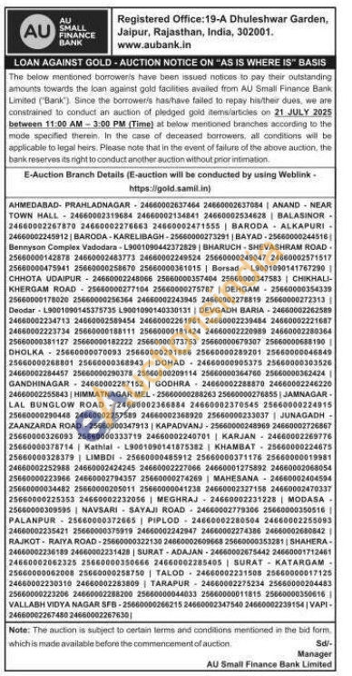 AU Small Finance Bank Gold Auctions Auction in Jaipur