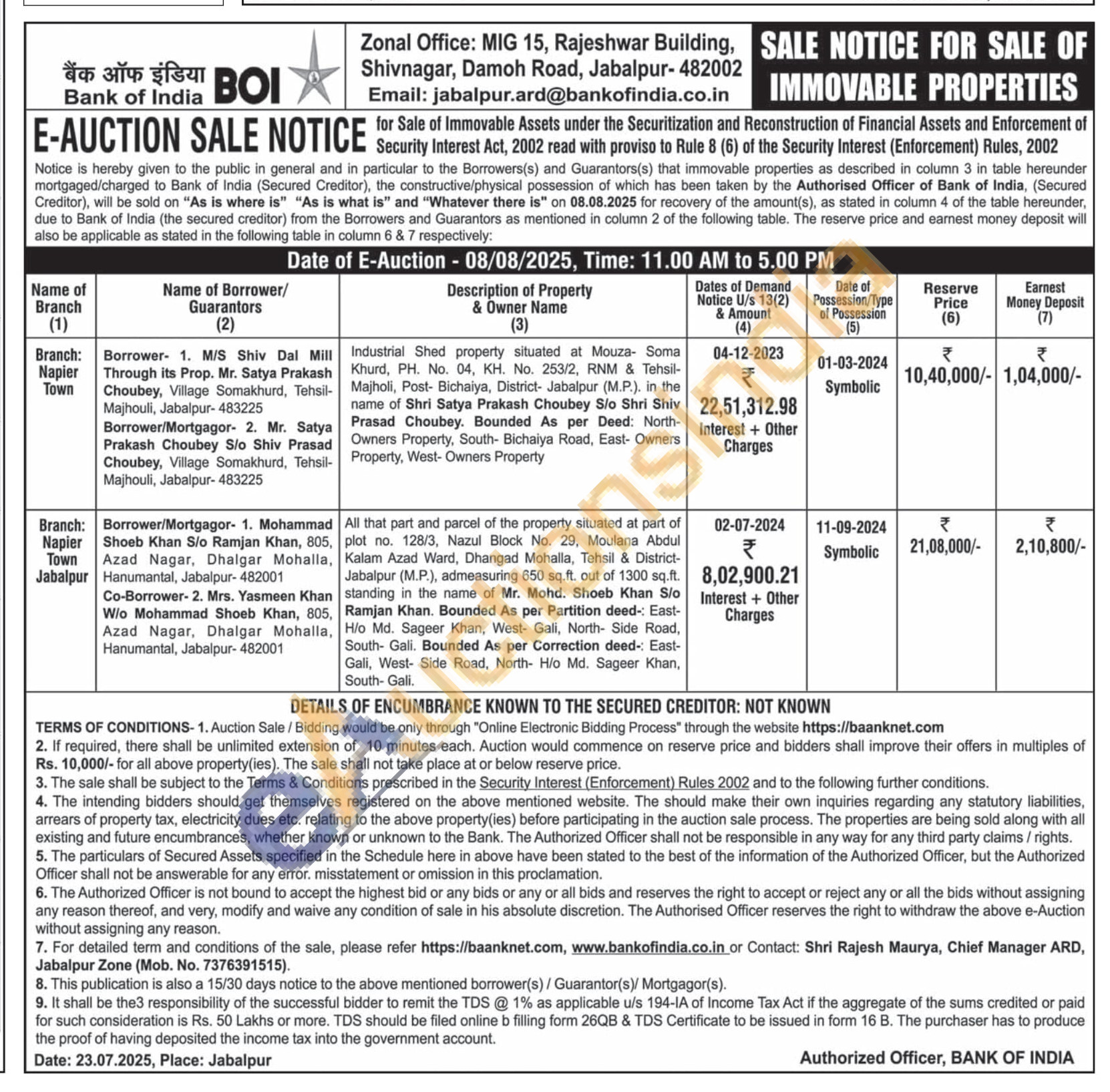 All that part and parcel of the property situated at part of plot no. 128/3, Nazul Block No. 29, Moulana Abdul Kalam Azad Ward, Dhangad Mohalla, Tehsil & District-Jabalpur (M.P.), admeasuring 650 sq.ft. out of 1300 sq.ft. standing in the name of Mr. Mohd. Shoeb Khan Slo Ramjan Khan. Bounded As per Partition deed-: East-H/o Md. Sageer Khan, West- Gali, North- Side Road, South- Gali. Bounded As per Correction deed-: East-Gali, West Side Road, North- H/o Md. Sageer Khan, South-Gali.