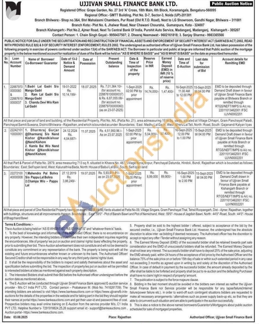 All that piece and parcel of One Residential Property having an extent of 288.44.5q Yards situated at Patta No.09, Village Singara, Gram Panchayat Thal. Tehsil Roopangarh, Dist-Ajmer, Rajasthan, together with buildings, structures and all improvements thereon