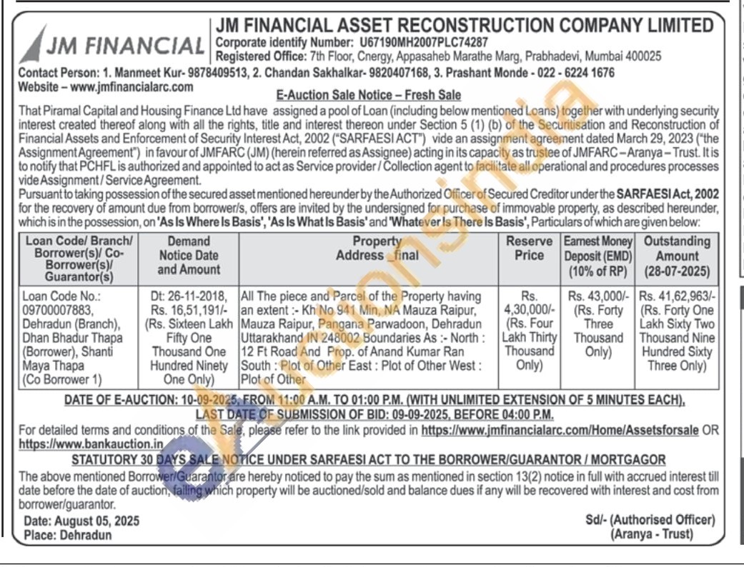 All The piece and Parcel of the Property having an extent: Kh No 941 Min, NA Mauza Raipur, Mauza Raipur, Pangana Parwadoon, Dehradun Uttarakhand IN 248002 Boundaries As :- North: 12 Ft Road And Prop. of Anand Kumar Ran South: Plot of Other East: Plot of Other West: Plot of Other