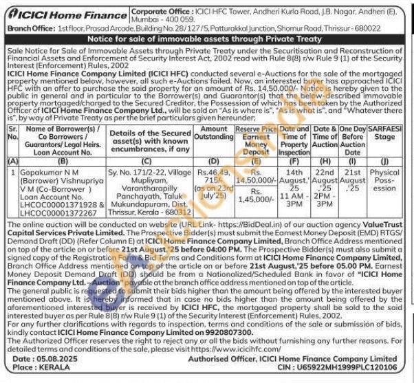 Sy. No. 171/2-22, Village Mupliyom, Varantharapilly Panchayath, Taluk Mukundapuram, Dist. Thrissur, Kerala-680312