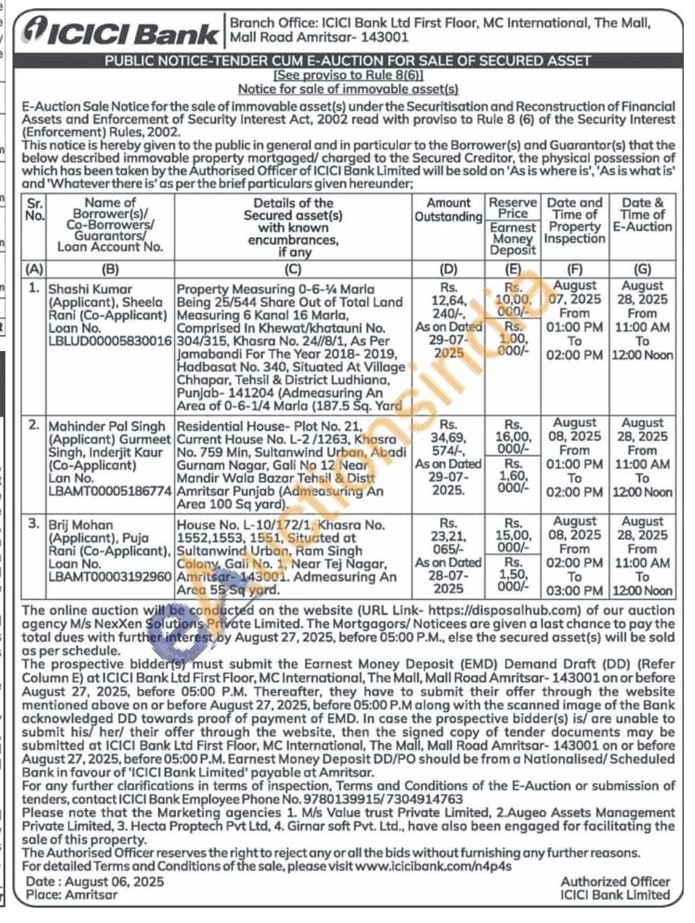 Property Measuring 0-6-4 Marla Being 25/544 Share Out of Total Land Measuring 6 Kanal 16 Marla, Comprised In Khewat/khatauni No. 304/315, Khasra No. 24//8/1, As Per Jamabandi For The Year 2018-2019, Hadbasat No. 340, Situated At Village Chhapar, Tehsil & District Ludhiana, Punjab-141204 (Admeasuring An Area of 0-6-1/4 Marla (187.5 Sq. Yard