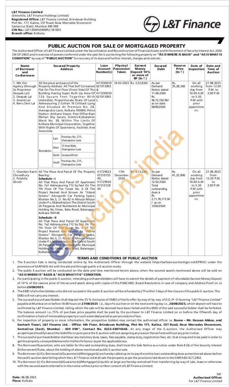 All That Piece And Parcel Of Apartment No. 7a2 Admeasuring 712 Sq.feet On The 7th Floor Of The Tower No. 6 Of The Project Named And Known As "Hiland Greens Alongwith Car Parking Space, Khatian No.3, J.I. No.42 In Mouza Mirpur Under P.s. Maheshtala In The District South 24 Parganas And Numbered As Municipal Holding No. 1/new, Bata Road, Batanagar, Kolkata-700140.