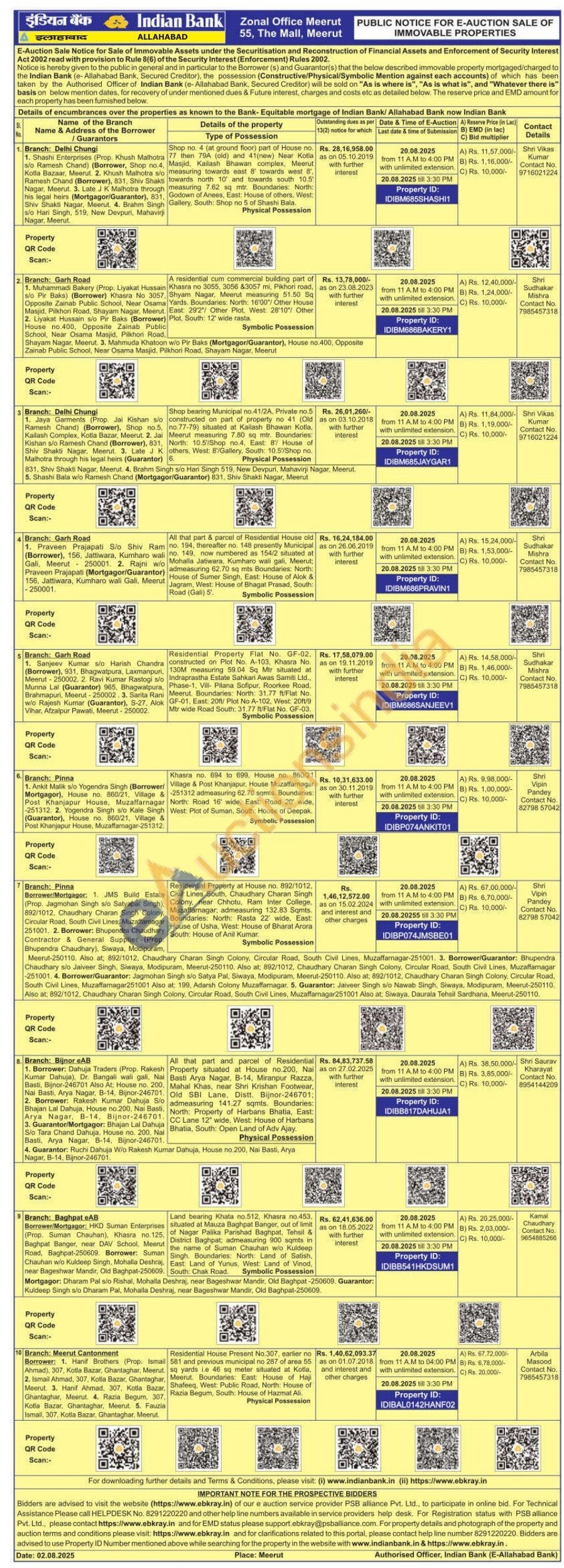 Khasra no. 694 to 699, House no. 860/21 Village & Post Khanjapur, House Muzaffarnagar -251312 admeasuring 62.70 sqmts. Boundaries: North: Road 16' wide, East: Road 20' wide, West: Plot of Suman, South: House of Deepak. Symbolic Possession