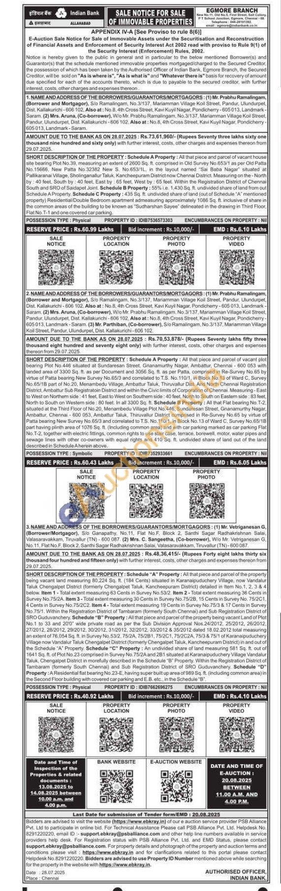 bearing Plot No 446 situated at Sundaresan Street, Gnanamurthy Nagar, Ambattur, Chennai-600 053 with landed area of 3300 Sq ft. as per Document and 3056 Sq. ft. as per Patta, comprised in Re-Survey No 65 by virtue of Patta bearing New Survey No.65/3 and correlated to T.S. No. 110/1, in Block No. 13 of Ward C, Survey No.65/18 part of No.20, Menambedu Village. Ambattur Taluk, Thiruvallur Dist. And North Chennal Registration District, Ambattur Sub Registratoin District and within the Civic limits of Corporation of Chennai. Measuring-East to West on Northern side: 41 feet, East to West on Southern side: 40 feet, North to South on Eastem side: 83 feet, North to South on Western side: 80 feet. In all 3300 Sq. ft. Schedule B Property: All that Flat bearing No.T-2 situated at the Third Floor of No.20, Menambedu Village Plot No.446, Sundaresan Street, Gnanamurthy Nagar, Ambattur, Chennai-600 053, Ambaltur Taluk, Thiruvallur District comprised in Re-Survey No.65 by virtue of Patta bearing New Survey No.65/3 and correlated to T.S. No. 110/1, in Block No. 13 of Ward C. Survey No.65/18 part having plinth area of 1076 Sq. ft. (Including common area) and with car parking marked as car parking Flat No.T-2, together with electric fittings, common rights to use stair case, terrace, borewell, motor, water pipes and sewage lines with other co-owners with equal rights and 410 Sq. ft. undivided share of land out of the land described in Schedule A herein above.