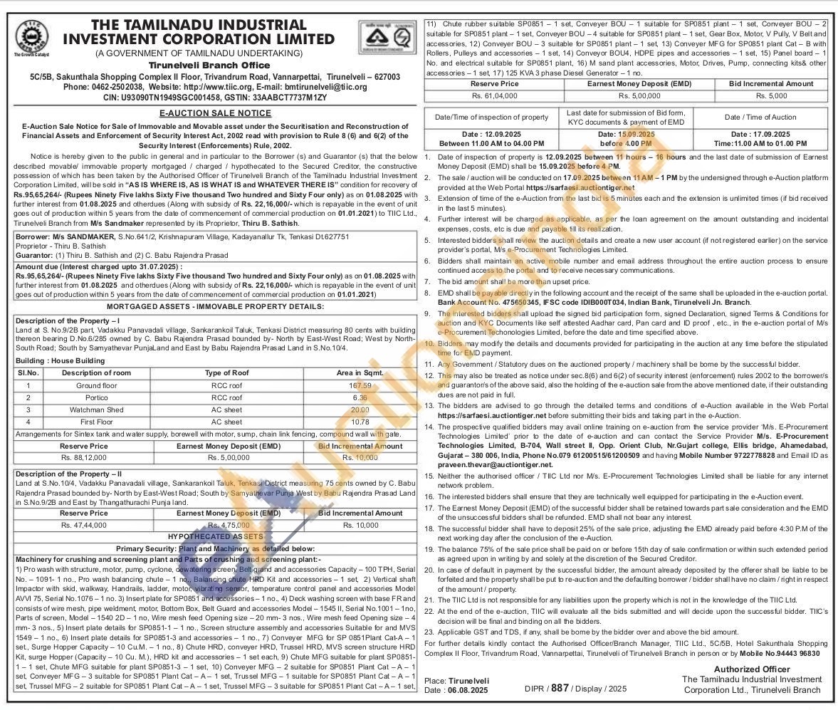 Land at S.No. 10/4, Vadakku Panavadali village, Sankarankoil Taluk, Tenkasi District measuring 75 cents owned by C. Babu Rajendra Prasad bounded by North by East-West Road: South by Samyathevar Punja West by Babu Rajendra Prasad Land in S.No 9/28 and East by Thangathurachi Punja land.