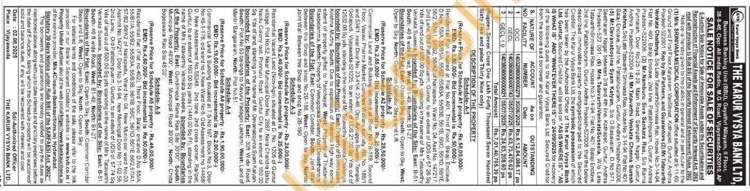 Commercial Land and Building situated at Shop No 28-189, Second Floor, Vasavi Pharma Market Complex Welfare society. RS No. 188/1 and 534/1, near Door No. 23-41/4, 23-46. Opp. Ayyappa Swamy Temple. Gollapudi, Vijayawada-521225, to an extent of UDS 21.00 Sq. Yds out of 12532.08 Sq. yds, standing in the name of Mr. Tatavarthy Venkata Chaitanya, bounded by: Boundaries of the Property: East: Property of Bommasani Krishna Murthy, South: Due to expansion of National High way some extent of property gifted to Panchayat. West: Property of Thadanki Raabelamma, North: Property of Venugopala Swamy Vari Devasthanam. Boundaries of the Flat: East: Common Corridor, South: Joint Wall Between this Shop and shop No.28-188, West: Open to Sky, North: Joint Wall Between this Shop and shop No. 28-190