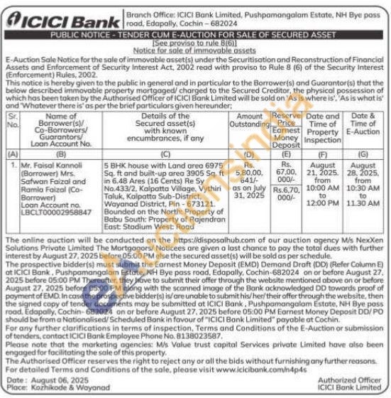 5 BHK house with Land area 6975 Sq. ft and built-up area 3905 Sq. ft in 6.48 Ares (16 Cents) Re Sy No.433/2, Kalpatta Village, Vythiri Taluk, Kalpatta Sub-District, Wayanad District, Pin-673121.
