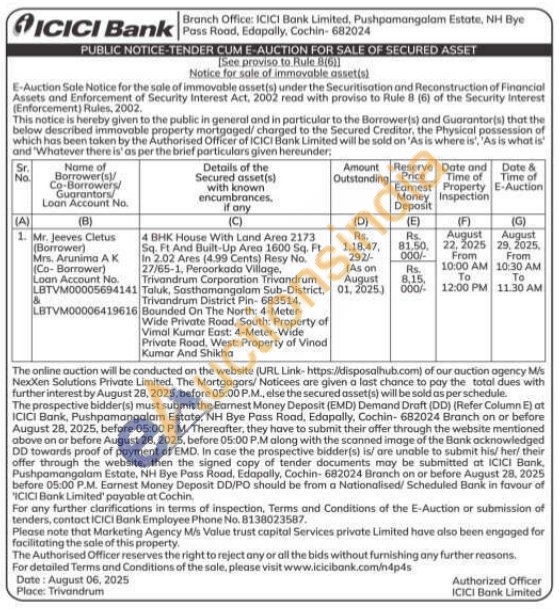 4 BHK House With Land Area 2173 Sq. Ft And Built-Up Aren 1600 Sq. Ft In 2.02 Ares (4.99 Cents) Resy No. 27/65-1, Peroorkada Village, Trivandrum Corporation Trivandrum Taluk, Sasthamangalam Sub-District, Trivandrum District Pin-683514.