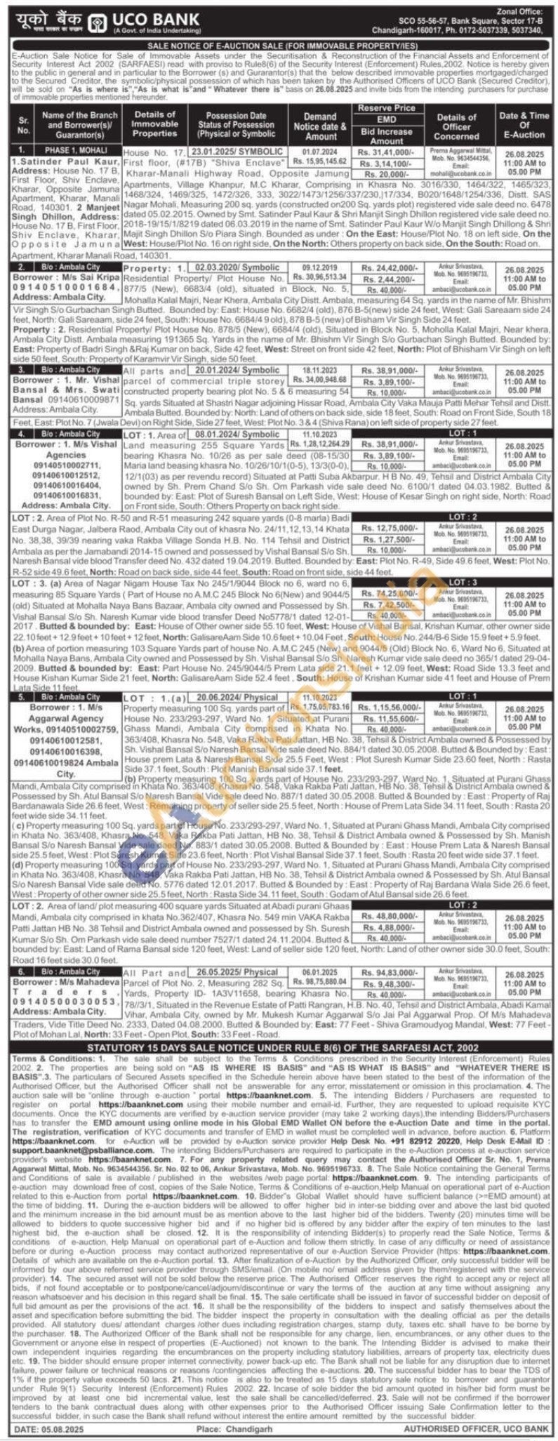Property: 1. Residential Property/ Plot House 877/5 (New), 6683/4 (old), situated in Block, No. 5 Mohalla Kalal Majri, Near Khera, Ambala City Distt. Ambala, measuring 64 Sq. yards in the name of Mr. Bhishm Vir Singh S/o Gurbachan Singh Butted. Bounded by: East: House No. 6682/4 (old), 876 B-5(new) side 24 feet, West: Gali Sareaam side 24 feet, North: Gali Sareaam, side 24 feet, South: House No. 6684/4 9 old), 878 B-5 (new) of Bisham Vir Singh Side 24 feet. Property: 2. Residential Property/ Plot House No. 878/5 (New), 6684/4 (old), Situated in Block No. 5, Moholla Kalal Majri, Near khera, Ambala City Distt. Ambala measuring 191365 Sq. Yards in the name of Mr. Bhishm Vir Singh S/o Gurbachan Singh Butted. Bounded by: East: Property of Badri Singh &Raj Kumar on back, Side 42 feet, West: Street on front side 42 feet, North: Plot of Bhisham Vir Singh on left side 50 feet, South: Property of Karamvir Vir Singh, side 50 feet.