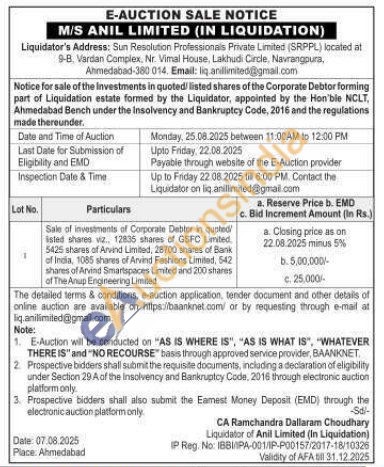 Sale of investments of Corporale Debter in quoted/Isled shares viz 12835 shares of GSFC Limited 5425 shares of Arvind Limited, 28700 shares of Bank of India, 1085 shares of Arvind Fashions Limited, 542 shares of Arvind Smartspaces Limited and 200 shares of The Anup Engineering Limited