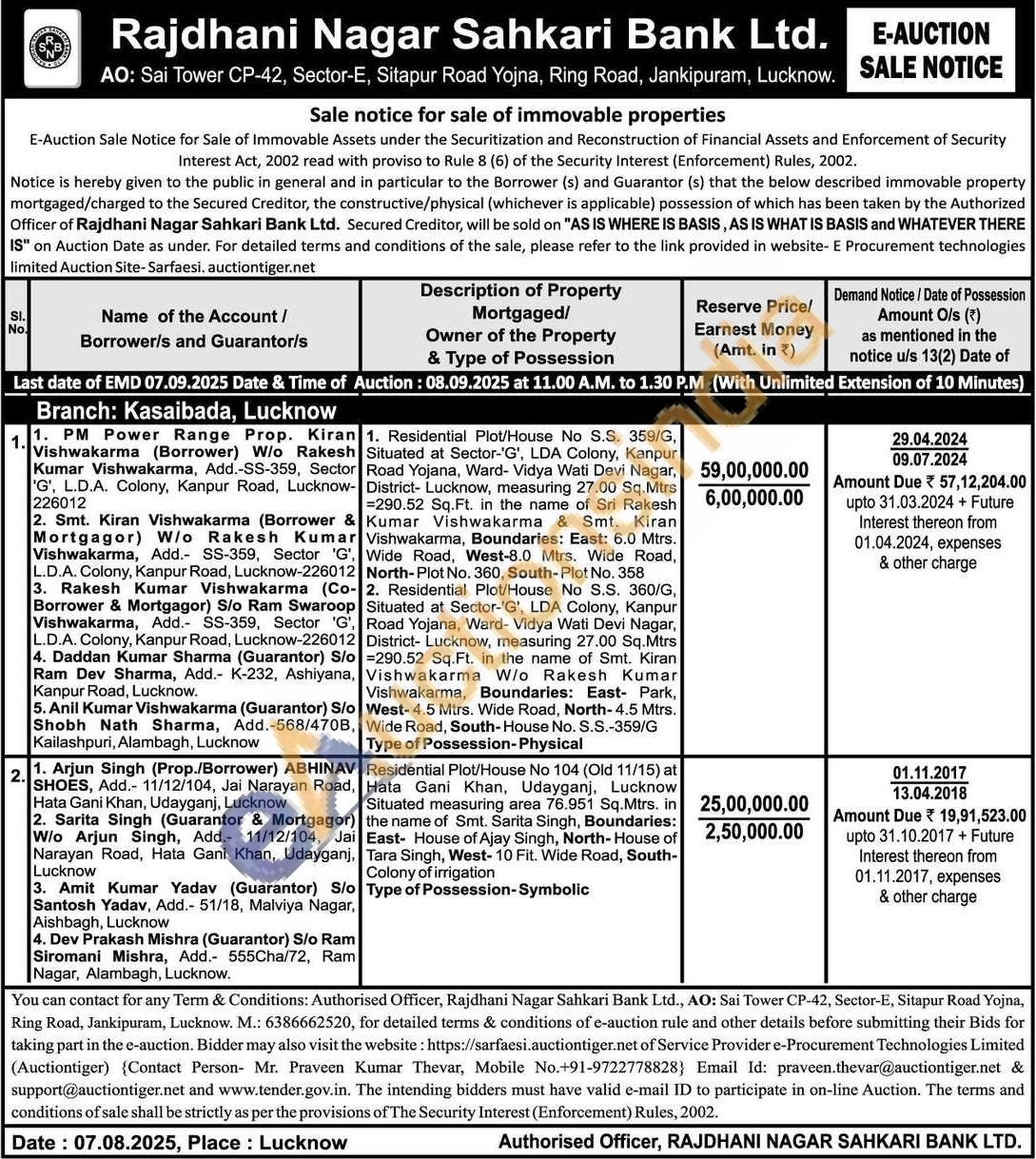 Residential Plot/House No 104 (Old 11/15) at Hata Gani Khan, Udayganj, Lucknow Situated measuring area 76.951 Sq.Mtrs. in the name of Smt. Sarita Singh, Boundaries: East- House of Ajay Singh, North-House of Tara Singh, West- 10 Fit. Wide Road, South-Colony of irrigation Type of Possession-Symbolic
