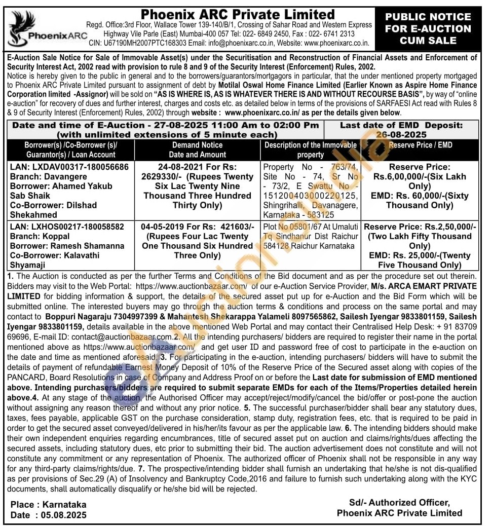 Property No 763/74, Site No 74, Sr No 73/2, E Swattu No 151200403000220125, 00220125, Shingrihalli, Davanagere, Karnataka-583125