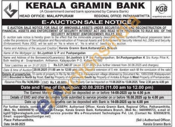 10 cants of property in Re Sy No.69/11-2 in Kalayapuram village obtained by Document No. 1065/2008 (Kalayapuram SRO)