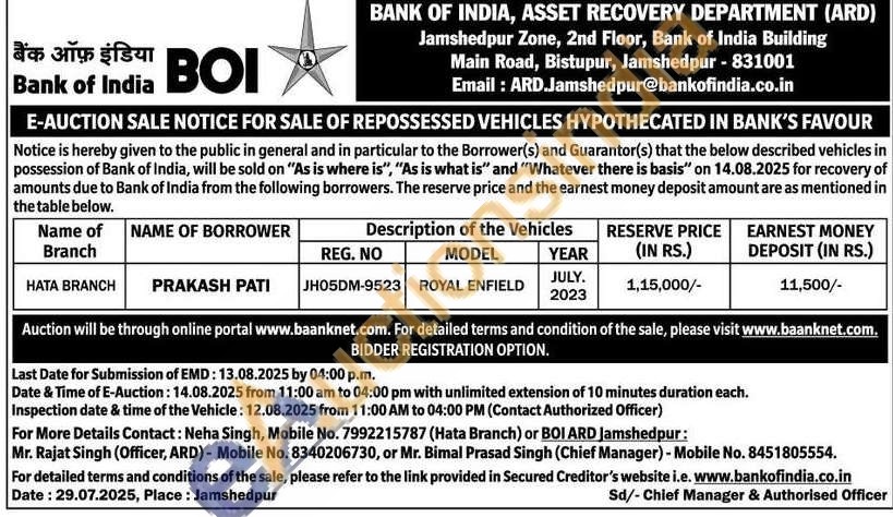 Contact Mr. Rajat Singh (Officer, ARD) - Mobile No. 8340206730, or Mr. Bimal Prasad Singh (Chief Manager) - Mobile No. 8451805554