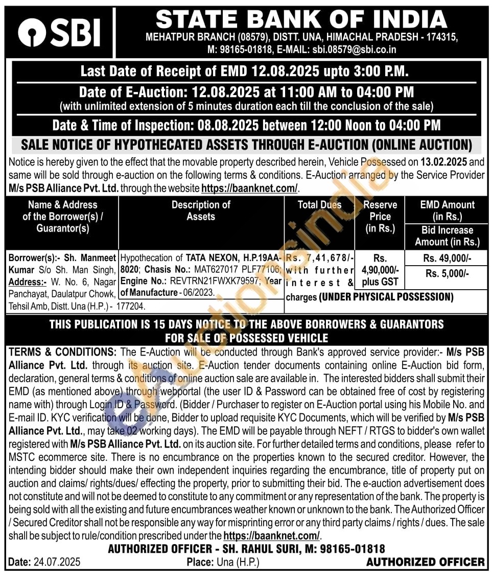 Hypothecation of TATA NEXON, H.P.19AA-8020; Chasis No.: MAT627017 PLF77106; Engine No.: REVTRN21FWXK79597; Year of Manufacture-06/2023