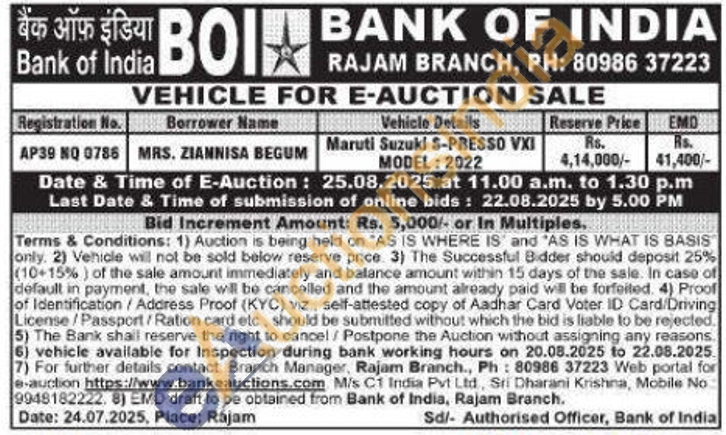 Contact Branch Manager, Rajam Branch., Ph: : 80986 37223