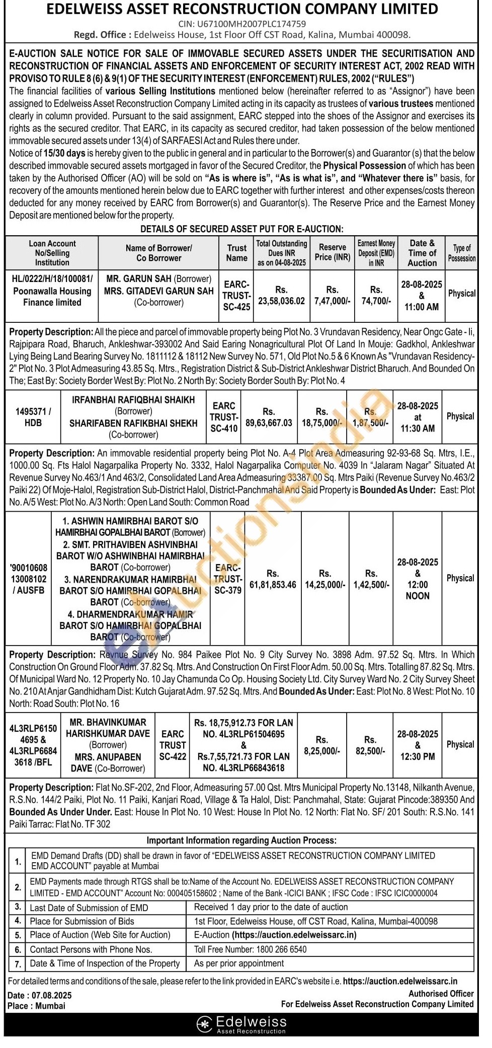 2) An immovable residential property being Plot No. A-4 Plot Area Admeasuring 92-93-68 Sq. Mtrs, I.E., 1000.00 Sq. Fts Halol Nagarpalika Property No. 3332, Halol Nagarpalika Computer No. 4039 In "Jalaram Nagar" Situated At Revenue Survey No.463/1 And 463/2, Consolidated Land Area Admeasuring 33387.00 Sq. Mtrs Paiki (Revenue Survey No.463/2 Paiki 22) Of Moje-Halol, Registration Sub-District Halol, District-Panchmahal And Said Property is Bounded As Under: East: Plot No. A/5 West: Plot No. A/3 North: Open Land South: Common Road