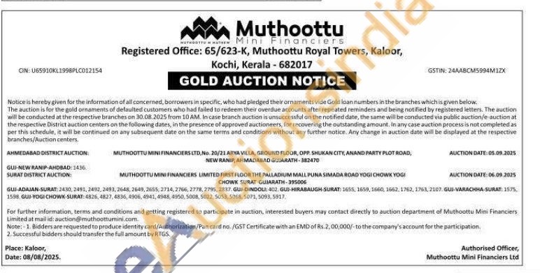 Muthoottu Mini Financiers Limited Gold Auctions Auction in Ahmedabad