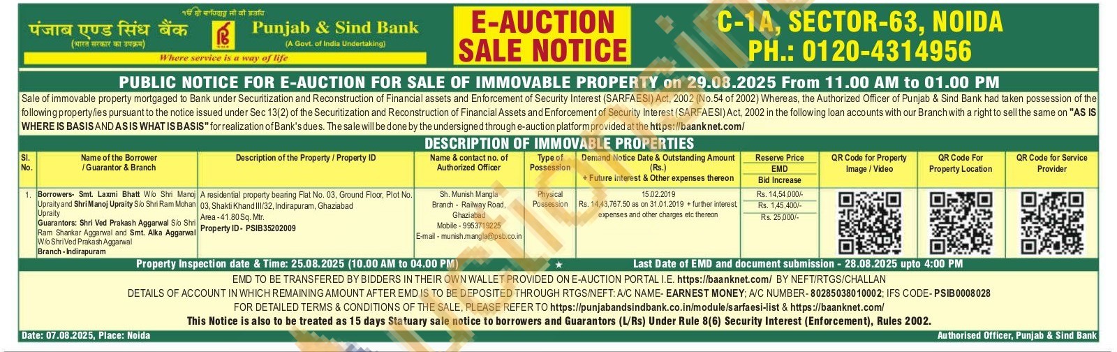 A residential property seating Flat No. 03. Ground Floor. Plot No 03, Shaidi Khand 32, Indirapuram, Ghaziabed Area-41.80 Sq. Mr. Property ID- PSIB35202009