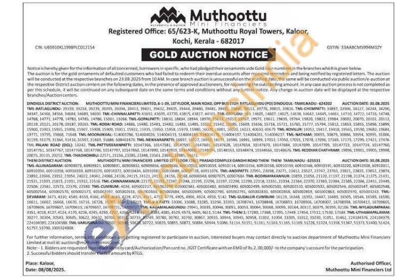 Muthoottu Mini Financiers Limited Gold Auctions Auction in Dindigul