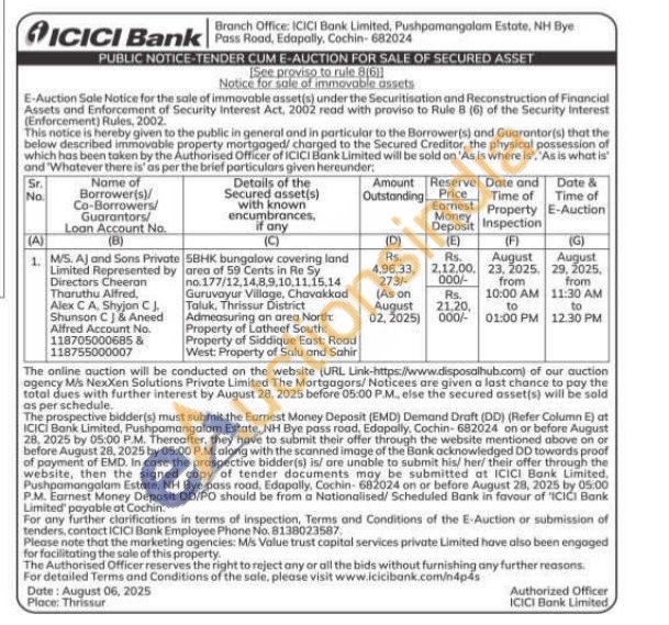 5 BHK bungalow covering land area of 59 Cents in Re Sy no.177/12,14,8,9,10,11,15,14 Guruvayur Village, Chavakkad Taluk, Thrissur District Admeasuring an area North Property of Latheef South: Property of Siddique East: Road West: Property of Salu and Sahir
