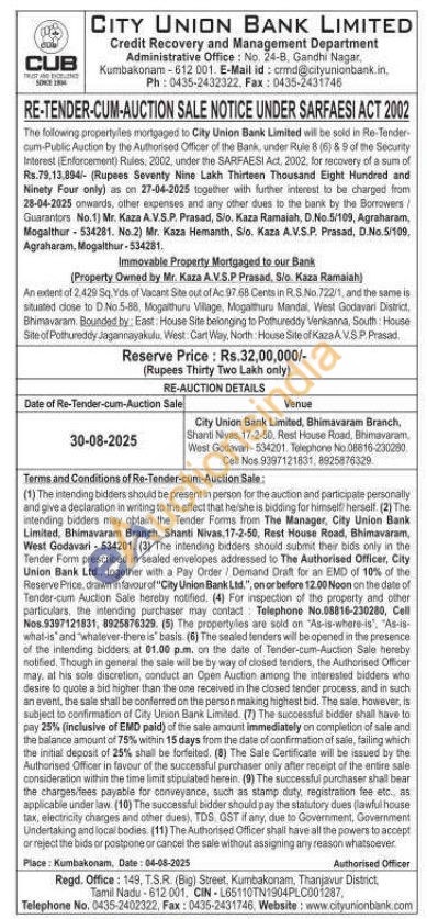 An extent of 2.429 Sq. Yds of Vacant Site out of Ac 97.68 Cents in R.S.No. 722/1, and the same is situated close to D.No.5-88, Mogalthuru Village, Mogalthuru Mandal, West Godavari District, Bhimavaram. Bounded by: East: House Site belonging to Pothureddy Venkanna, South: House Site of Pothureddy Jagannayakulu, West Cart Way, North House Site of KazaAVSP. Prasad