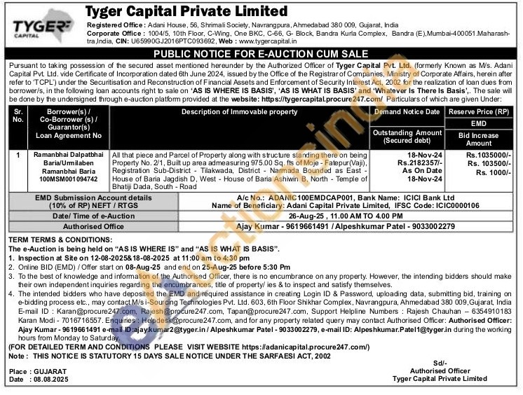 Authorised Officer: Ajay Kumar-9619661491 / Alpeshkumar Patel -9033002279