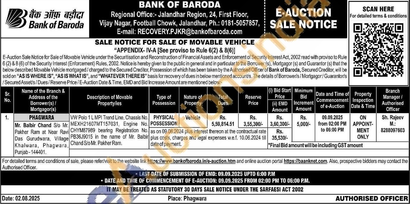 Volkswagen Polo 1L MPI Trend Line, Chassis No.. MEXH21607MT157031, Engine No. CHYM87989 bearing Registration No. PB36J9015 in the name of Mr. Balbir Chand S/o Mr. Pakher Ram