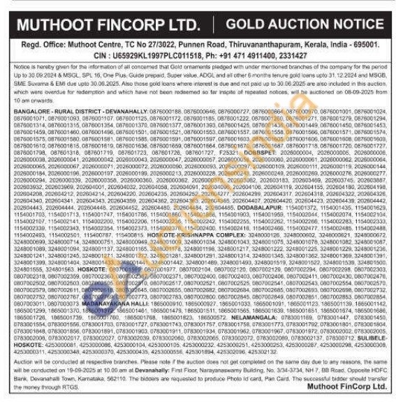 Muthoot Fincorp Ltd Gold Auctions Auction in Bengaluru