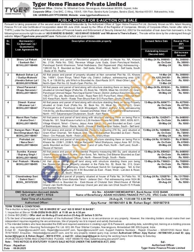 All that peace and parcel of land along with structure standing there pon being the Residential House Property situated in the Patta No. 50. Book No. 313, Gram Panchyat Chak 110 Bakhtana, Gram Panchayat Samiti Sri Ganganagar, Teh & Dist Sri Ganganagar Measuring 50 X 90 Bounded as East-Road, West-Lali devi & Road, North-Krishan Lal, South Mamta