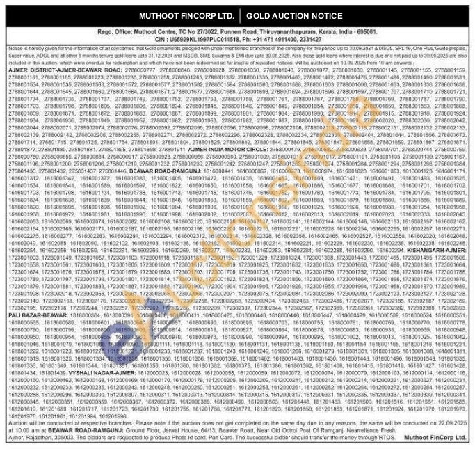 Muthoot Fincorp Ltd Gold Auctions Auction in Thiruvananthapuram
