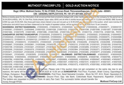 Muthoot Fincorp Ltd Gold Auctions Auction in Thiruvananthapuram
